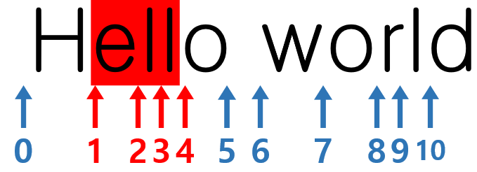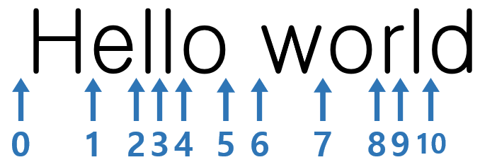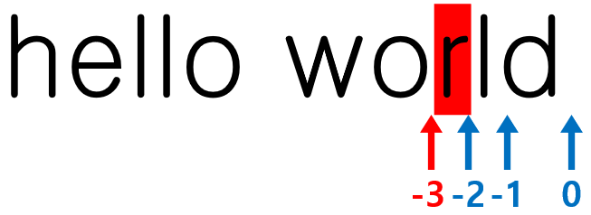문자열의 인덱스를 위와 같이 생각하면 이해하기 쉬울 것입니다.