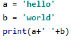 이렇게 a + 공백 + b를 하면 hello world가 출력되는 것을 알 수 있습니다.
