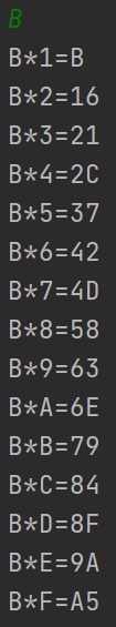 B를 입력하면 다음과 같이 B의 15단이 나온다 :)