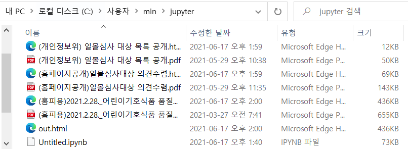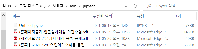 준비한 pdf를 jupyter notebook 파일(ipynb)이 있는 폴더에 넣는다. (위의 예시에서는 C:\Users\min\jupyter )