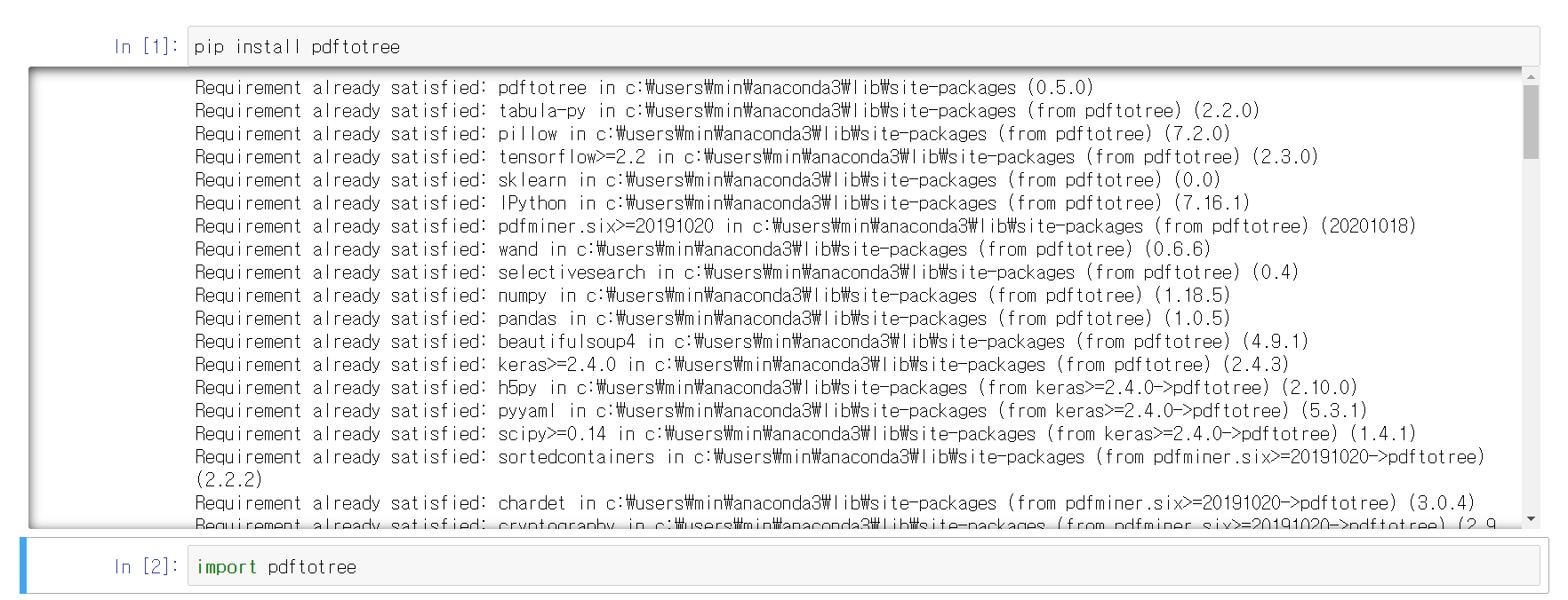 * pip install pdftotree와 import pdftotree는 따로 하는 걸 추천한다.