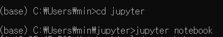 jupyternotebook을 실행하고 싶은 폴더로 이동 후 실행한다.