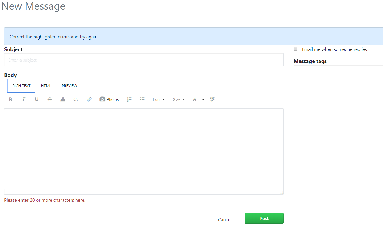 Subject에 질문의 제목을, Body에 질문의 내용을 입력합니다.