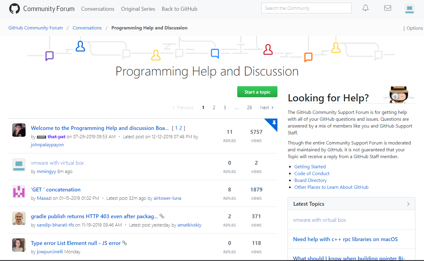 질문을 하고 싶으면 Start a topic 버튼을 클릭해서 질문을 작성합니다.