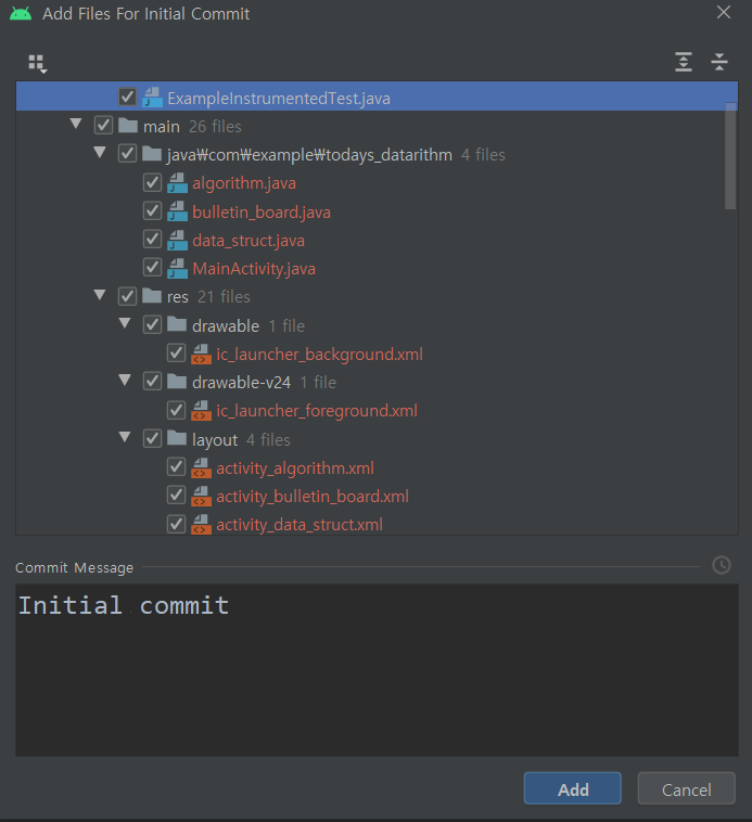 어떤 파일들을 커밋할지에 대한 창이다.