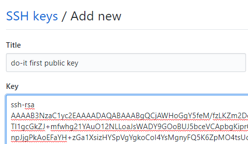 그리고 Key 칸에 아까 복사해두었던 키를 붙여넣고 Add SSH Key 버튼을 클릭합니다.