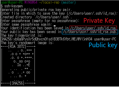 위와 같이 ~/.ssh에 프라이빗키(id_rsa)와 퍼블릭키(id_rsa.pub)가 생성된 것을 확인 할 수 있습니다.