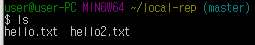 또한, $ ls 명령어로 지역저장소인 local-rep에 hello2.txt도 포함된 것을 알 수 있습니다.