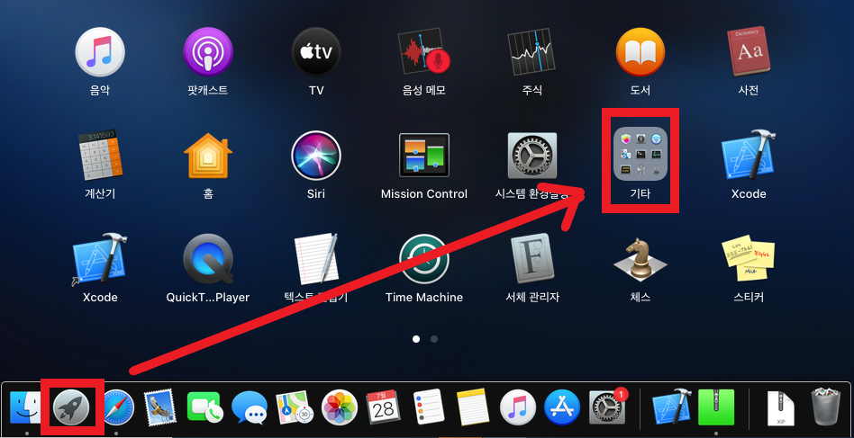 mac에서 각종 앱을 찾기 위해서는 'Launchpad'를 클릭합니다.(우주선 모양)