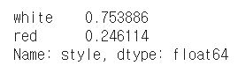 data = wines["style"].value_counts(normalize=True)