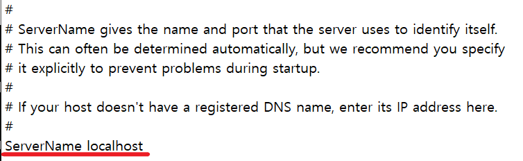 주석(#)을 지우고 localhost 혹은 127.0.0.1 을 입력합니다.