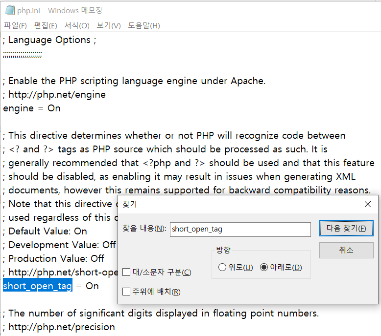 (php를 여는 짧은 태그를 허용해준다는 의미이다.)
