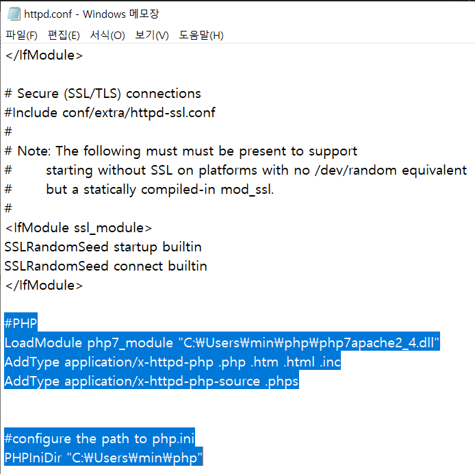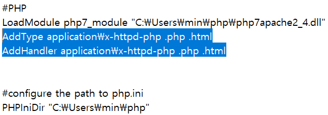 LoadModule php7_module "C:\Users\min\php\php7apache2_4.dll"