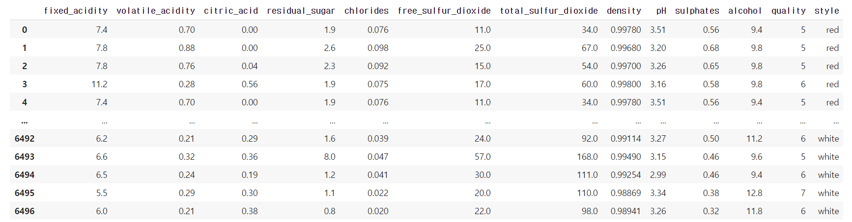 파일을 읽어온 wines의 style 칼럼의