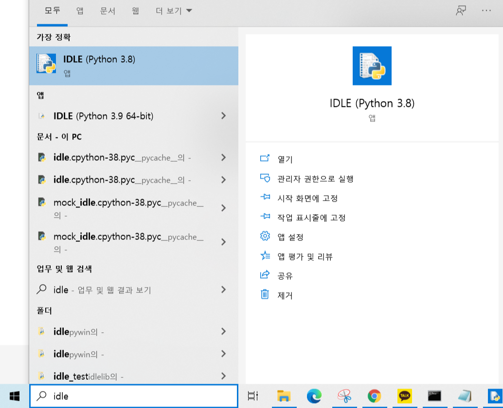 윈도우 검색창에 IDLE를 검색하면 나타납니다.